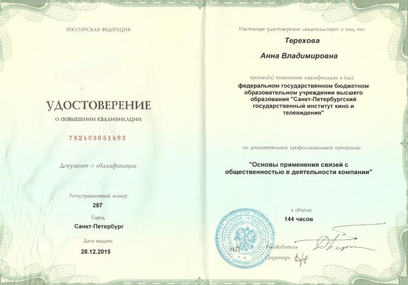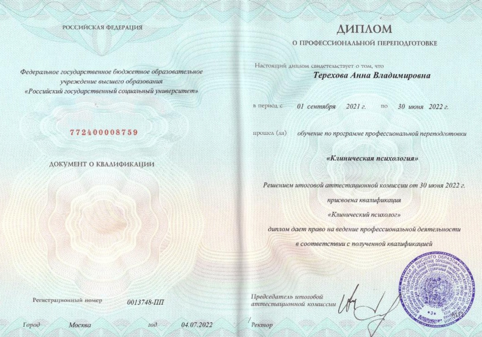 Терехова Анна Владимировна