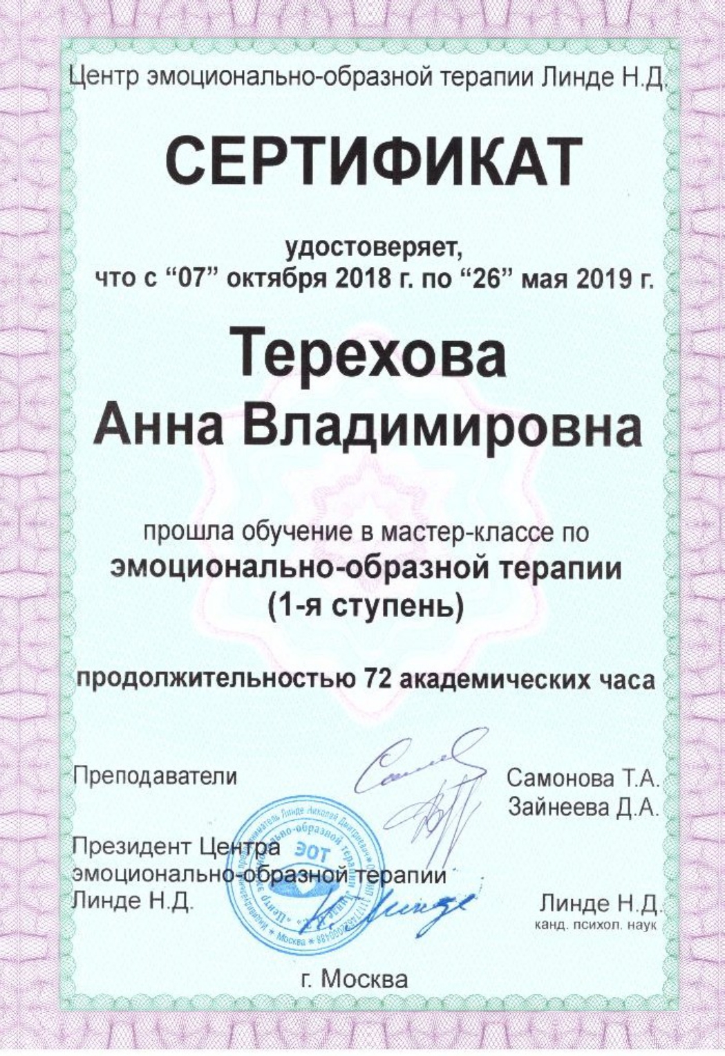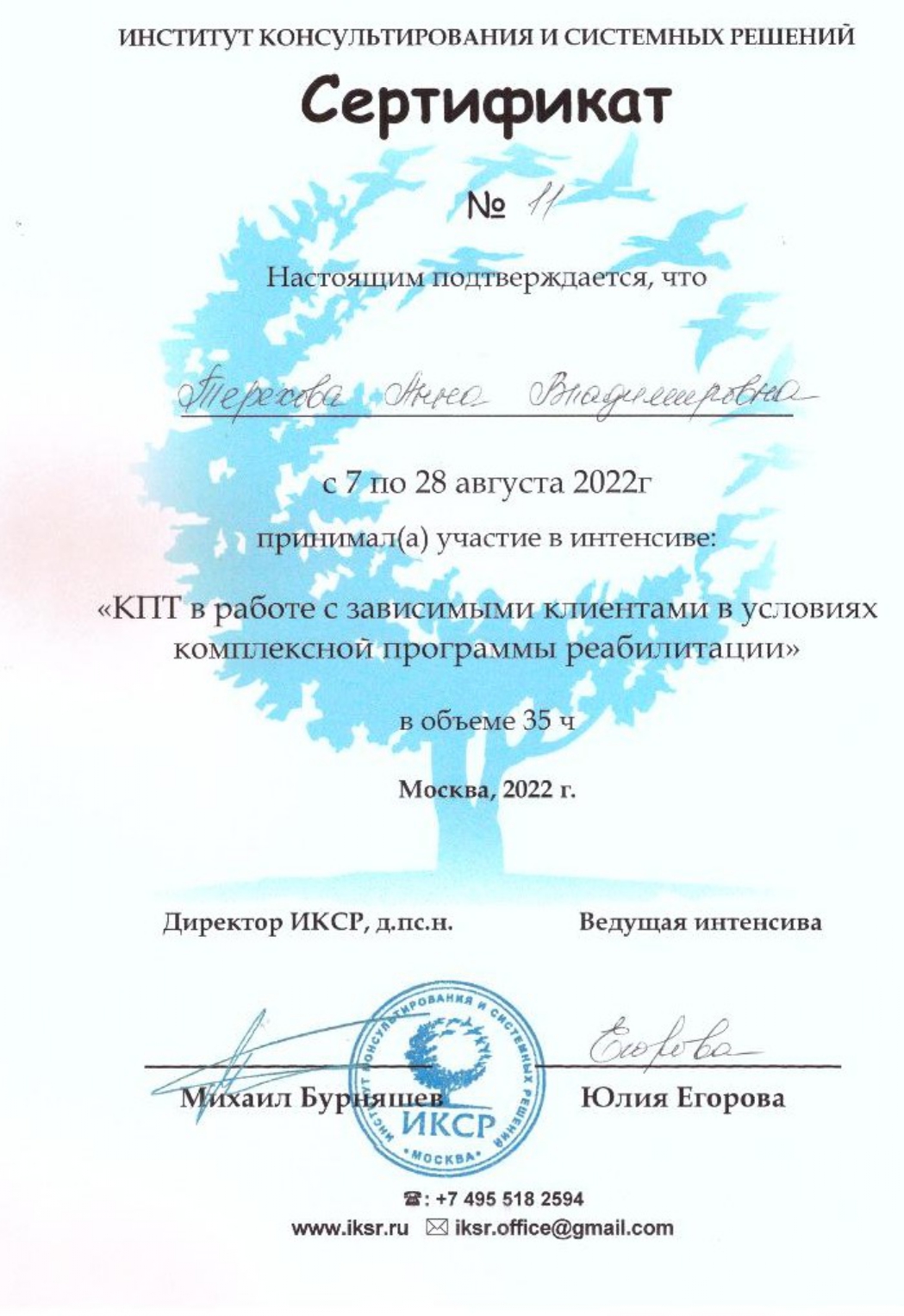 Анна Владимировна — профессионал высочайшего класса и при этом чуткий, внимательный человек. Я обратилась к ней с большой бедой, когда узнала, что мой сын — наркоман. Анна Владимировна помогла подобрать реабилитационный центр под мой бюджет и посоветовала нам с мужем пройти курс избавления от созависимости, ведь, как оказалось, чрезмерная опека и контроль за сыном толкали его в яму наркомании. Сын лечился от зависимости, а мы работали над собой. Результат обнадеживает, сын уже 2 года не употребляет, работает, живет полноценной жизнью. И наши отношения наладились. Спасибо, Анна Владимировна!
