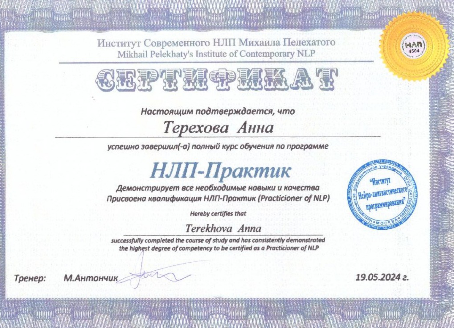 Я очень благодарен Анне Тереховой за помощь и поддержку, которые я получил во время прохождения программы от игровой зависимости. Вначале было страшно и сложно признать, что проблема существует, но благодаря внимательному подходу психолога я почувствовал, что меня действительно понимают и не осуждают. Занятия помогли мне осознать причины моего поведения, разобраться с эмоциями и постепенно вернуть контроль над собственной жизнью. Я научился справляться со стрессом и трудностями, не уходя в игру. Огромное спасибо за профессионализм, терпение и чуткость! Теперь я вижу свет в конце тоннеля и верю, что смогу двигаться дальше самостоятельно.